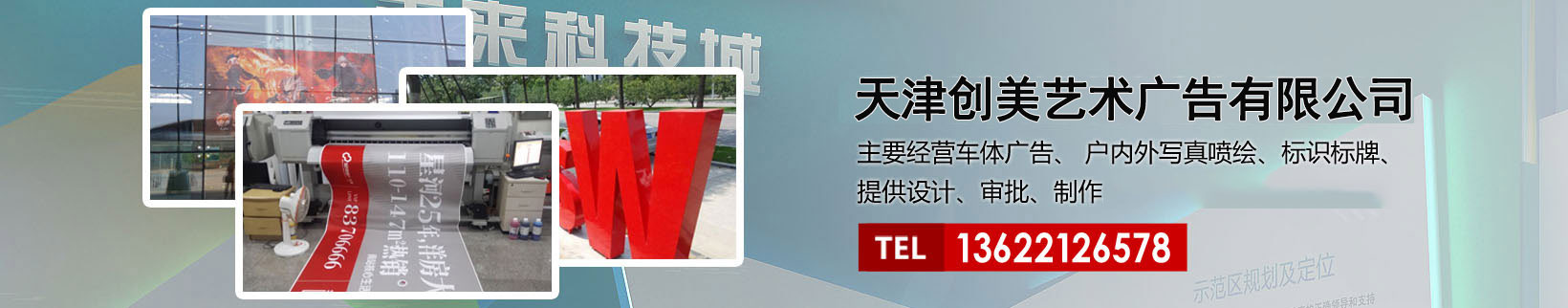 天津創(chuàng)美藝術(shù)廣告有限公司主要經(jīng)營(yíng)車體廣告、 戶內(nèi)外寫(xiě)真噴繪、標(biāo)識(shí)標(biāo)牌、提供設(shè)計(jì)、審批、制作、發(fā)布的服務(wù)。